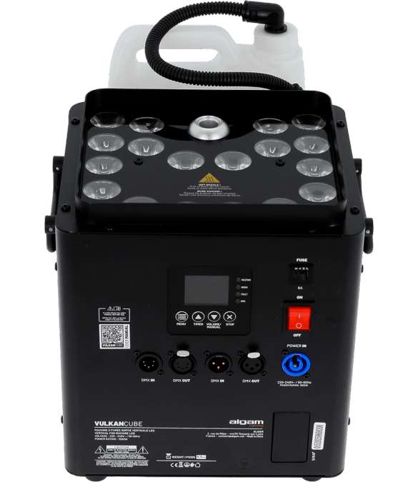 de vos événements, en toute simplicité. La Vulkan Cube accepte tous les types de liquides : faible, moyenne et haute densité ainsi que le liquide à dissipation rapide.