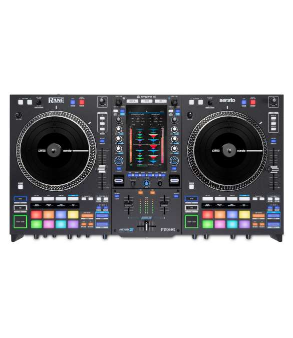 Conçu pour la scène, le System One place la réactivité au cœur de l’expérience DJ. Son écran tactile HD de 7" centralise la navigation dans vos playlists, la gestion des stems, des effets et l’éclairage SoundSwitch. Les 8 pads RGB par deck, accompagnés d’écrans OLED dédiés, offrent un retour visuel clair sur cues, samples, rolls et Stems. En complément, trois boutons Playlist Banks permettent d’accéder instantanément à vos playlists stratégiques, garantissant des enchaînements fluides même en situation live.