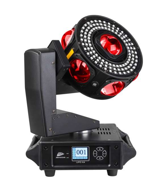 Effet multi-lumières 4-en-1 intégrant lasers, LEDs stroboscopiques, LEDs RGBW et LEDs RGB pour une large couverture et des effets dynamiques. Fonctionnement en DMX, autonome ou maître/esclave, écran LCD, connecteurs XLR 3 points et powerCON, compatible DMX sans fil