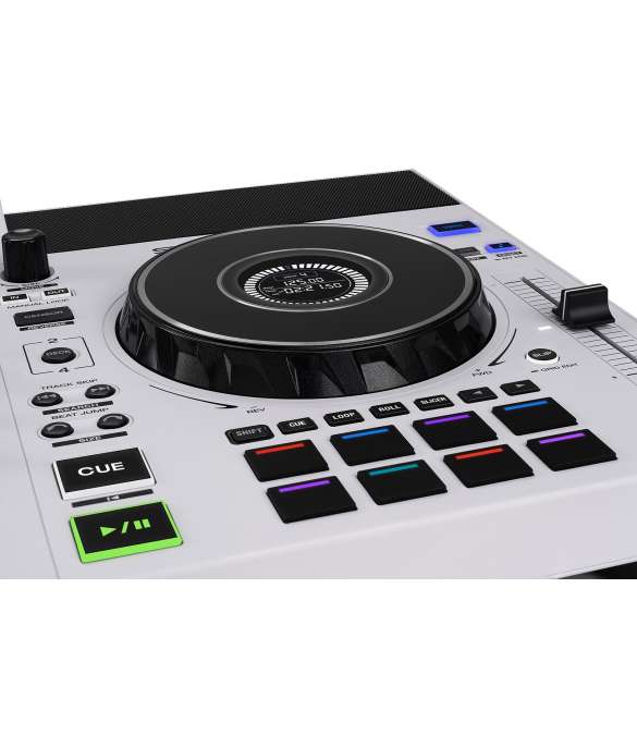 Le SC LIVE 4 apporte aux DJ toute la puissance nécessaire pour se produire n’importe où sur 4 voies grâce à la grande liberté offerte par le système autonome embarqué et à l’accès à de nombreux services de streaming populaires, y compris Amazon Music Unlimited. Héritant de l’interface caractéristique et du workflow type « Club » intuitif des lecteurs de médias professionnels SC6000 et des tables de mixage Denon DJ, le SC LIVE 4 présente 8 pads de performance RVB sous chaque platine, associés aux modes Hot Cue, AutoLoop, Roll et Slicer/Slicer Loop.