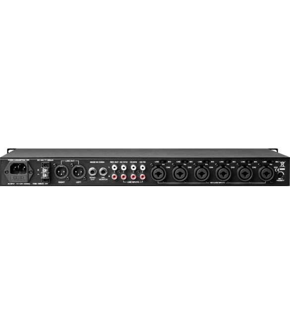 - 3 entrées stéréo Rca (6 mono) avec indicateur de signal et contrôle du gain d'entrée individuel